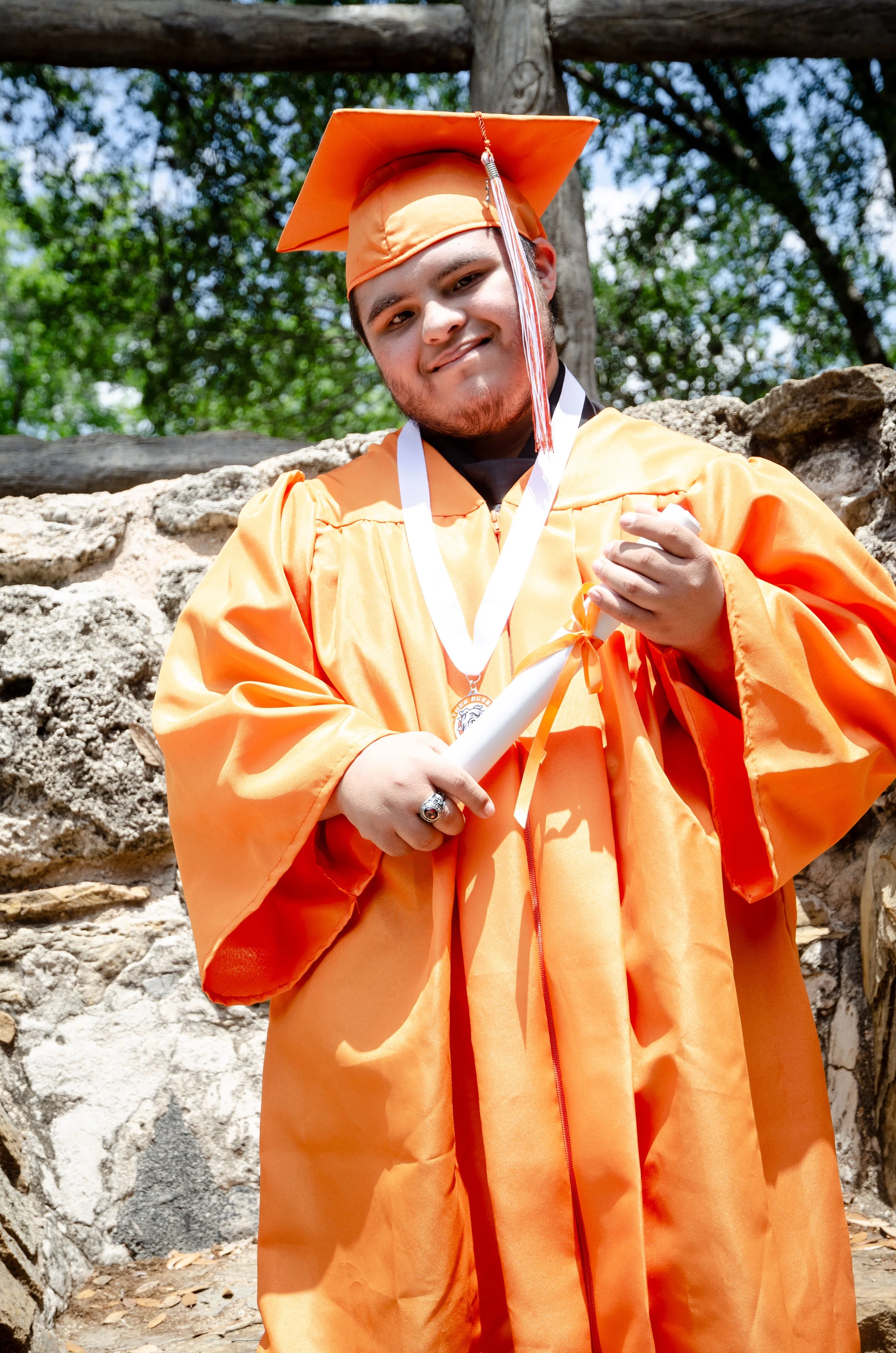 My husband and I were exploring the Missions in San Antonio today. I brought the camera with as I was photographing for my Photography class final. We ran into this very sweet family who were taking pictures of their son with their phone. Dad spoke up and said “That’s what we need! We need one of those cameras so we don’t have to rely on our phones.” I offered to snap a few images of their son. So here are a few images of this very sweet young man.