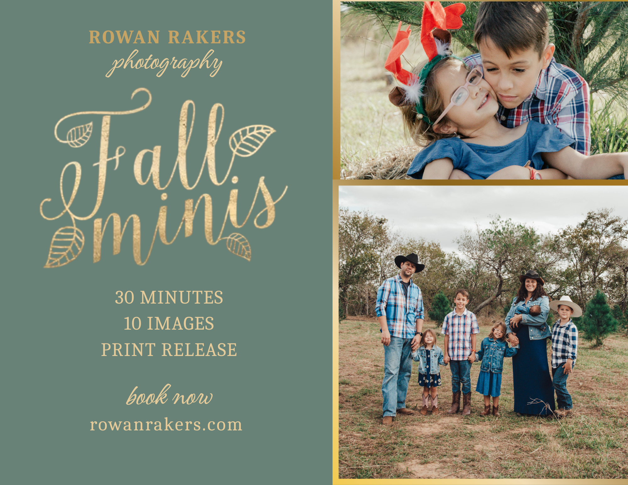 Haven’t updated your family pictures in a while, and just aren’t sure when the right time is? Have family coming into town and want to get some pictures of the kids with their grandparents? Fall break is the perfect time for that. From now until December 1st Fall Mini sessions are only $150.